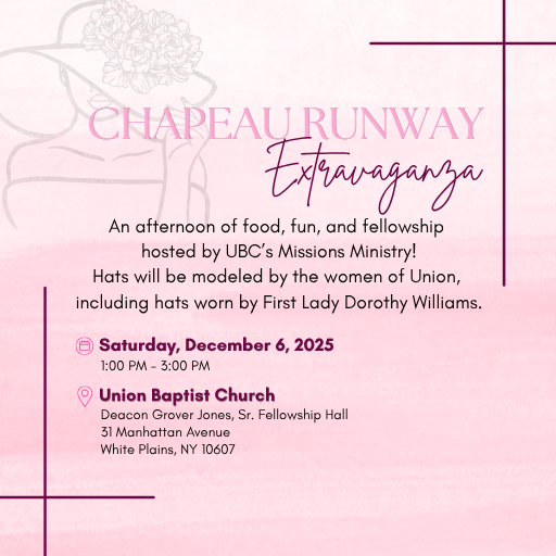 An afternoon of food, fun, and fellowship hosted by UBC’s Missions Ministry! Hats will be modeled by the women of Union, including hats worn by...
